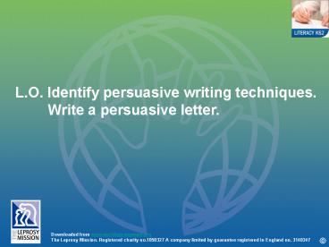 Title: L'O' Identify persuasive writing techniques' Write a persuasive letter'