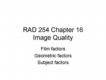 RAD 254 Chapter 16 Image Quality PowerPoint PPT Presentation