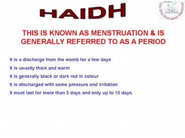 BLOOD DISCHARGED WHICH IS NEITHER HAIDH NOR NIFAS