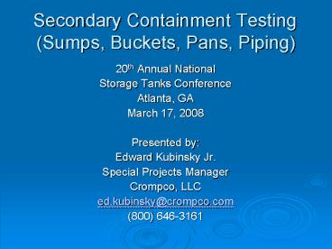 Secondary Containment Testing Sumps, Buckets, Pans, Piping PowerPoint PPT Presentation