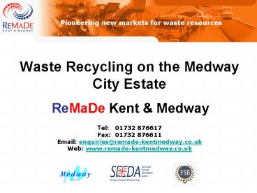 Title: Waste Recycling on the Medway City Estate ReMaDe Kent