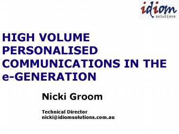 1HIGH VOLUME PERSONALISED COMMUNICATIONS IN THE