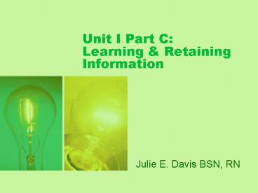 Unit I Part C: Learning PowerPoint PPT Presentation