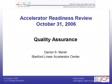 Accelerator Readiness Review October 31, 2006 PowerPoint PPT Presentation