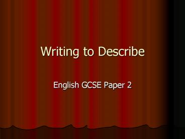 Writing to Describe PowerPoint PPT Presentation