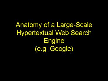 <Notice: Removed> Anatomy of a Large-Scale Hypertextual Web Search Engine (e.g. Google) PowerPoint PPT Presentation