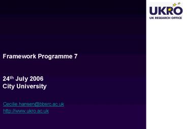 1Framework Programme 724th July 2006City