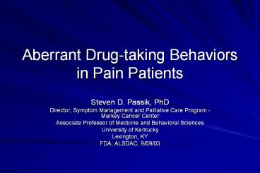 Title: Aberrant Drug-taking Behaviors in Pain Patients