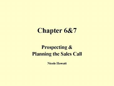 - Planning the Sales Call