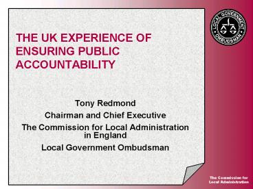 THE UK EXPERIENCE OF ENSURING PUBLIC ACCOUNTABILITY PowerPoint PPT Presentation