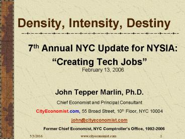 <Notice: Removed> Density, Intensity, Destiny PowerPoint PPT Presentation