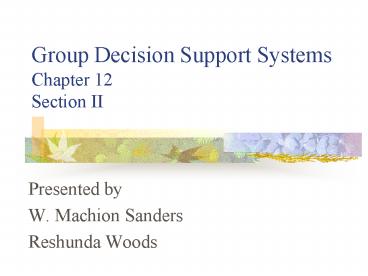 Group Decision Support Systems Chapter 12 Section II PowerPoint PPT Presentation