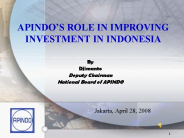 APINDOS ROLE IN IMPROVING INVESTMENT IN INDONESIA