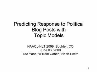 <Notice: Removed> Predicting Response to Political Blog Posts with Topic Models PowerPoint PPT Presentation
