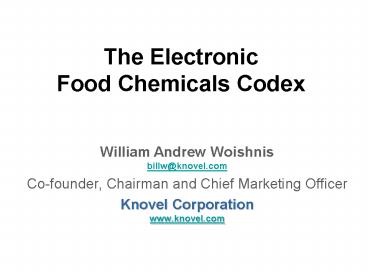 The Electronic Food Chemicals Codex PowerPoint PPT Presentation
