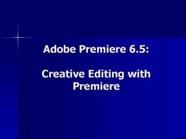 Adobe Premiere 6'5: Creative Editing with Premiere PowerPoint PPT Presentation