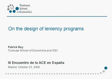 <Notice: Removed> On the design of leniency programs PowerPoint PPT Presentation
