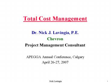 Title: Total Cost Management