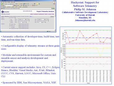 Hackystat Support for Software Telemetry Philip