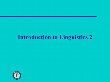 Introduction to Linguistics 2 PowerPoint PPT Presentation