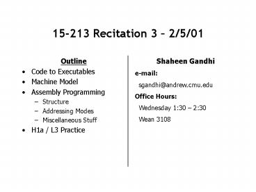 15-213 Recitation 3 PowerPoint PPT Presentation