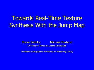 Towards RealTime Texture Synthesis With the Jump Map PowerPoint PPT Presentation