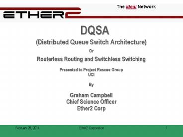 below the network layer DQSA just slides in. - A DQSA switch can look like an Ethernet switch,