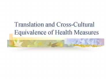 Title: Translation and CrossCultural Equivalence of Health Measures