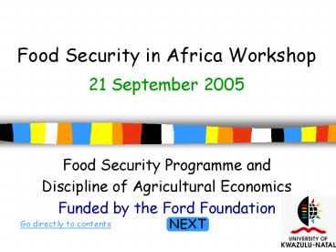 Food Security in Africa Workshop PowerPoint PPT Presentation