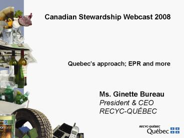 Ms. Ginette Bureau President CEO RECYC-QUÉBEC