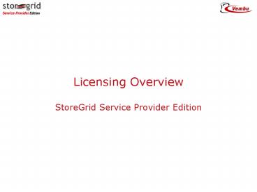 Title: Licensing Overview StoreGrid Service Provider Edition