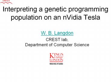 <Notice: Removed> Interpreting a genetic programming population on an nVidia Tesla PowerPoint PPT Presentation
