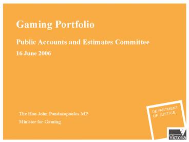 The Hon John Pandazopoulos MP Minister for Gaming