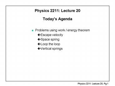 Physics 2211: Lecture 20 Today's Agenda PowerPoint PPT Presentation