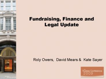 Title: Fundraising, Finance and Legal Update