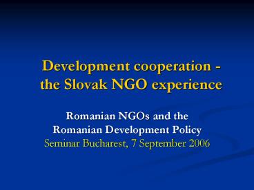 Development cooperation the Slovak NGO experience PowerPoint PPT Presentation