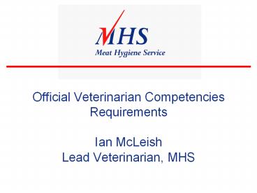 Title: Official Veterinarian Competencies Requirements Ian McLeish Lead Veterinarian, MHS