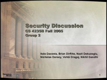 Security Discussion CS 4235B Fall 2005 Group 2 PowerPoint PPT Presentation