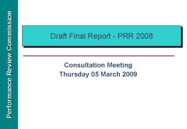 <Notice: Removed> Draft Final Report PRR 2008 PowerPoint PPT Presentation