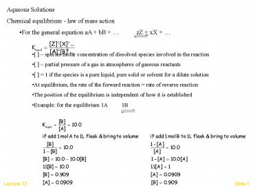 solid or solvent for a dilute solution - At equilibrium, the rate of the forward reaction
