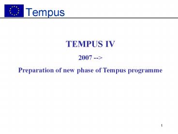TEMPUS IV 2007 --gt Preparation of new phase of