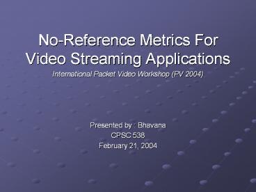 No-Reference Metrics For Video Streaming Applications PowerPoint PPT Presentation