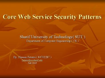 <Notice: Removed> Core Web Service Security Patterns PowerPoint PPT Presentation