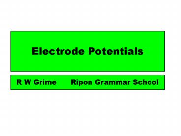 Concentration 1.0 mol dm-3 (ions involved in ½