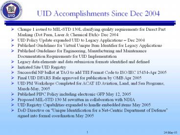 <Notice: Removed> UID Accomplishments Since Dec 2004 PowerPoint PPT Presentation