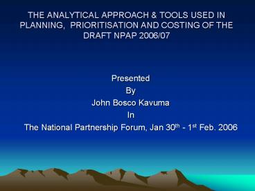 PRIORITISATION AND COSTING OF THE DRAFT NPAP