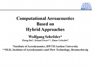 Aerodynamics, RWTH Aachen UniversityDLR,