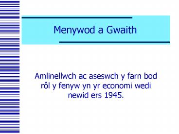 • Mae gwaith menywod yn seiliedig ar dybiaethau ar