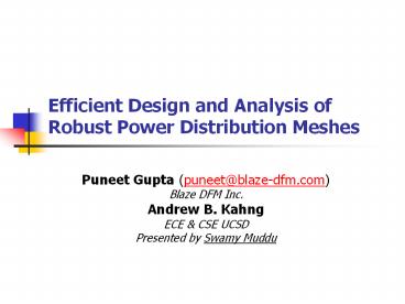 Efficient Design and Analysis of Robust Power Distribution Meshes PowerPoint PPT Presentation