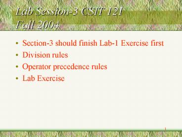 Lab Session-3 CSIT 121 Fall 2004 - PowerPoint PPT Presentation